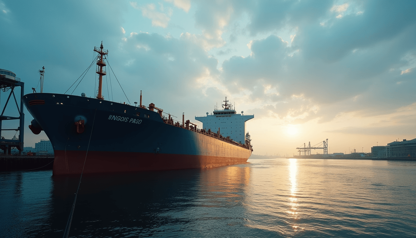 Cargo ship docked at port for compliance checks
